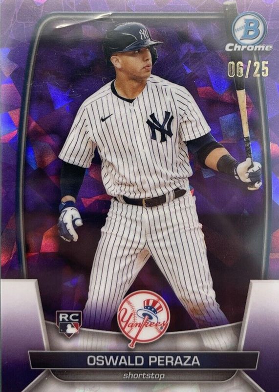 2023 Bowman Chrome Rookie Purple Sapphire Oswald Peraza Yankees 21/25 #44