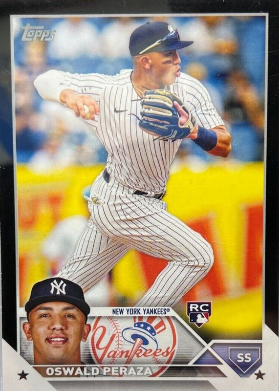This card is 1 of 18 Oswald Peraza's card variations in the 2023 Topps set being tracked by Sports Card Investor, including Base, Gold Foil, Rainbow Foil, Royal Blue, and Gold /2023.
