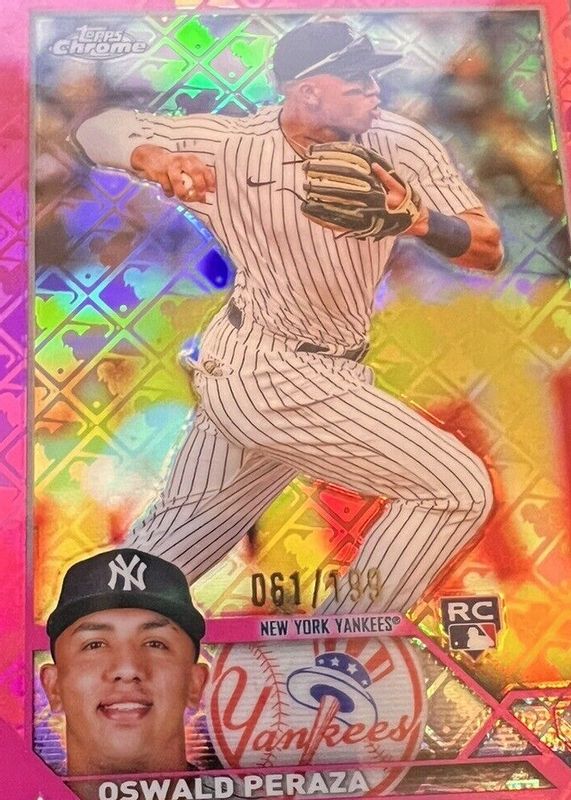 2023 Topps Chrome Logofractor Oswald Peraza Pink Refractor Rookie RC #049/199
