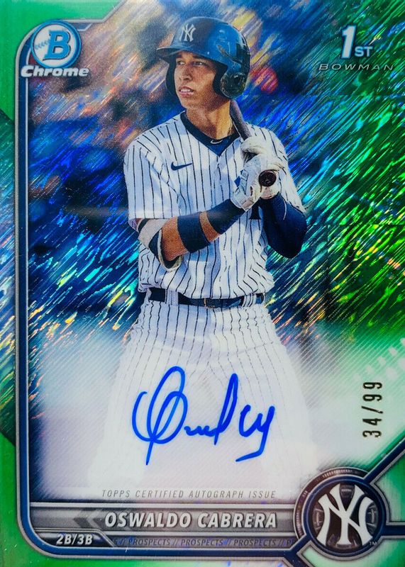 2022 Bowman Chrome Oswaldo Cabrera Green Shimmer Refractor Auto 81/99 Yankees