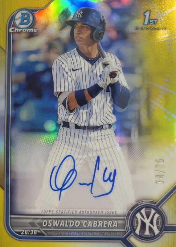 2022 Bowman Oswaldo Cabrera 1st Bowman Chrome Yellow Refractor Auto /75