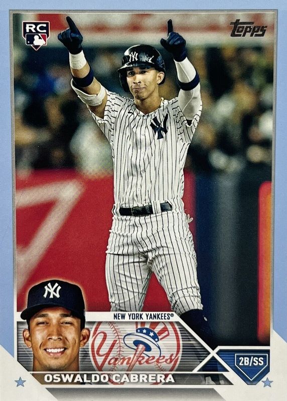 This card is 1 of 20 Oswaldo Cabrera's card variations in the 2023 Topps set being tracked by Sports Card Investor, including Base, Gold Foil, Rainbow Foil, Royal Blue, and Gold /2023.