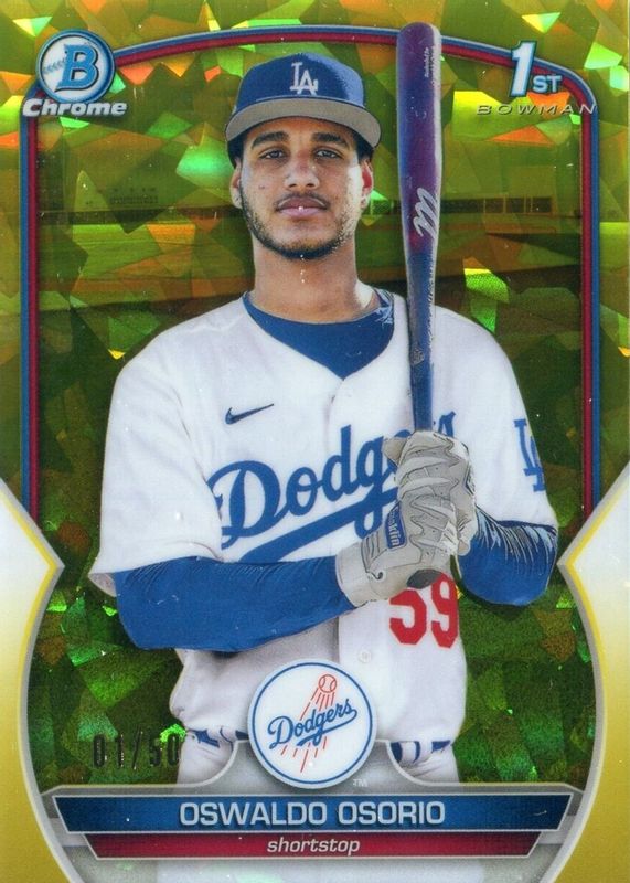 Best Prices Available For Sale of Oswaldo Osorio 2023 Bowman Chrome Sapphire Edition #BCP-152 Prospects - Yellow /50 (1st)