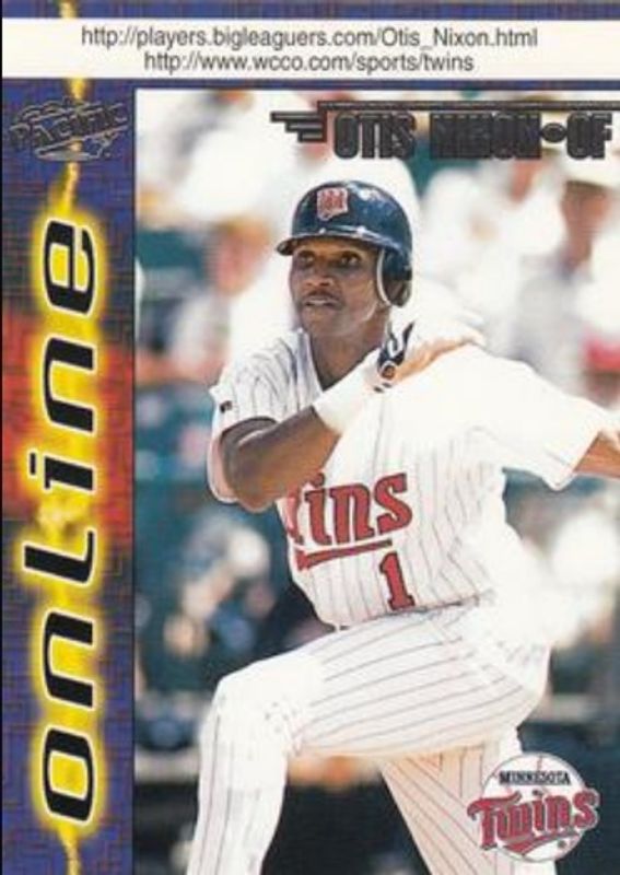 The Otis Nixon 1998 Pacific Online #430 Base card is 1 of 4 Otis Nixon's card variations in the 1998 Pacific Online set being tracked by Sports Card Investor, including Base Winners, Red, and Web Cards.
