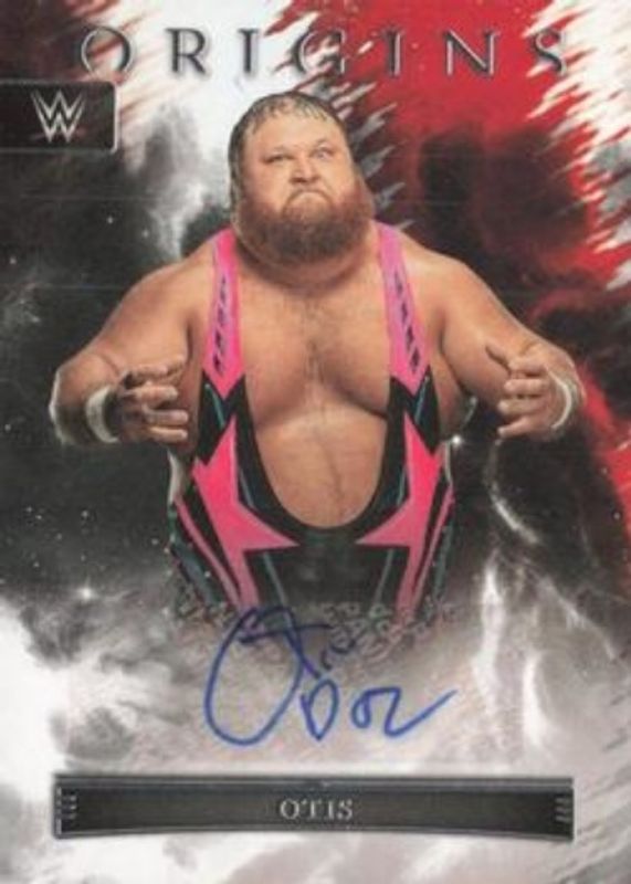 The Otis 2023 Chronicles WWE #OA-OTS Origins Autographs card is 1 of 18 Otis' card variations in the 2023 Chronicles WWE set being tracked by Sports Card Investor, including Origins Autographs - Red, Phoenix Autographs, Phoenix Autographs - Red, Absolute Tools of the Trade Signatures /99, and Crown Royale Silhouettes /99.