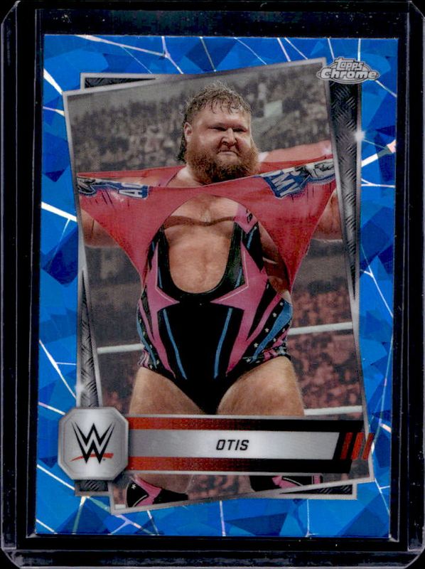 The Otis 2025 Topps Chrome WWE Sapphire Edition #45 Base Chrome card is 1 of 10 Otis' card variations in the 2025 Topps Chrome WWE Sapphire Edition set being tracked by Sports Card Investor, including Red Brand Autographs, Base Chrome - Gold Refractor /50, Base Chrome - Orange Refractor /25, Red Brand Autographs - Orange Refractor /25, and Base Chrome - Purple Refractor /10.