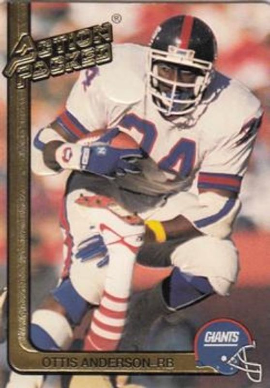 The Ottis Anderson 1991 Action Packed #181 Base card is 1 of 2 Ottis Anderson's card variations in the 1991 Action Packed set being tracked by Sports Card Investor, including 24K Gold.