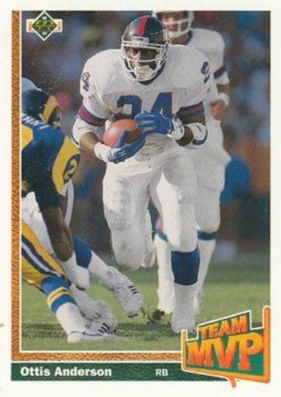 The Ottis Anderson 1991 Upper Deck #469 Base card is 1 of 2 Ottis Anderson's card variations in the 1991 Upper Deck set being tracked by Sports Card Investor, including Base.