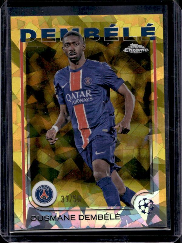 Ousmane Dembele's Soccer cards are available in at least 105 sets. Ousmane Dembele's biggest 7-day price movers are 2024 Topps Chrome Sapphire UEFA Club Competitions #109 Gold /50, 2024 Topps Chrome Sapphire UEFA Club Competitions #109 Orange /25, and 2024 Topps Chrome Sapphire UEFA Club Competitions #109 Green /99.