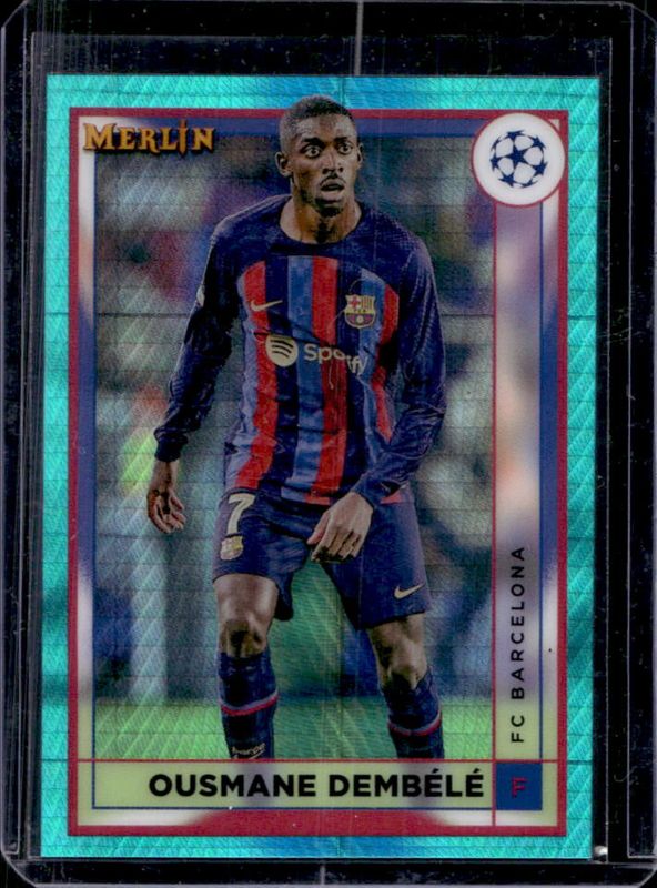 Ousmane Dembele's Soccer cards are available in at least 73 sets. Ousmane Dembele's biggest 7-day price movers are 2022 Topps Merlin Chrome UEFA Club Competitions #51 Aqua Prism Refractor, 2022 Topps Merlin Chrome UEFA Club Competitions #51 Refractor, and 2022 Topps Merlin Chrome UEFA Club Competitions #51 Purple Refractor /15.