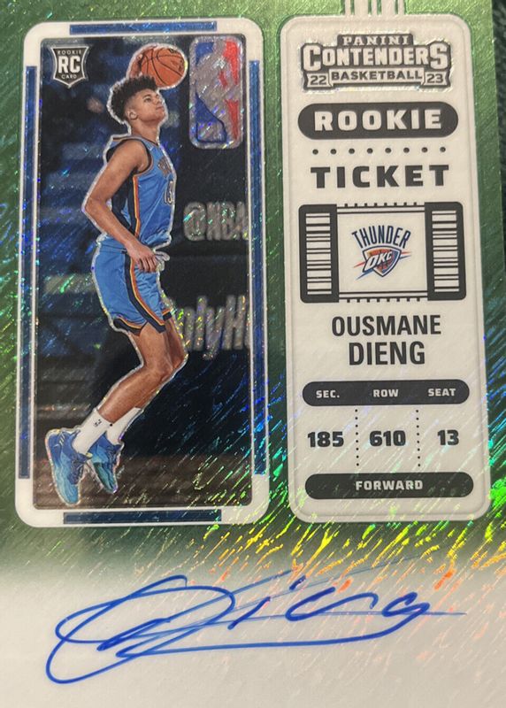 Ousmane Dieng 2022 Contenders #122 Rookie Ticket Auto - Premium Green Shimmer RAW Price Guide