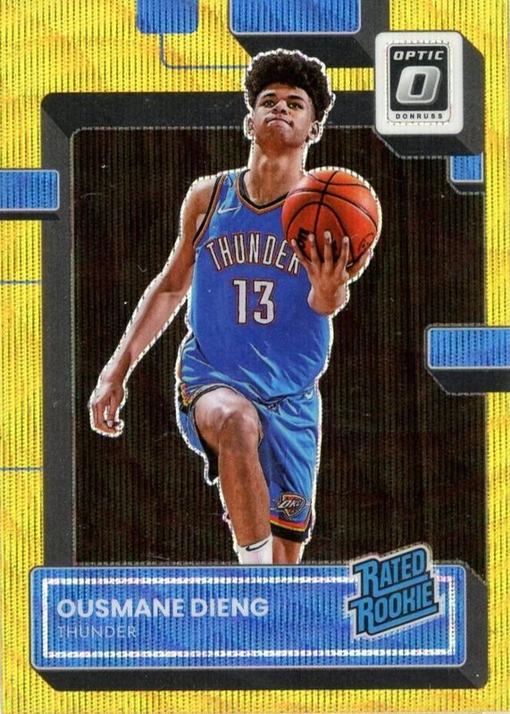 The Ousmane Dieng 2022 Optic #220 Gold Wave /10 Rookie card in Raw condition has not changed in price in the last 30 days and was last sold for $55.00 .