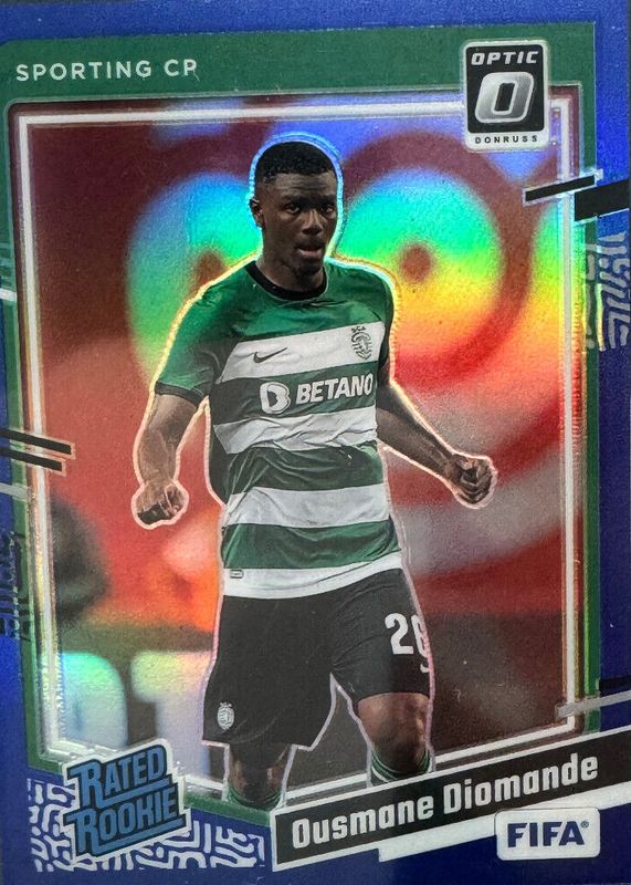 2023-2024 Donruss Soccer Ousmane Diomande Rated Rookie Optic Blue Prizm 02/99
