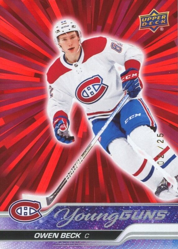 Owen Beck 2023 Upper Deck #214 Young Guns - Outburst Red /25 Rookie RAW Price Guide