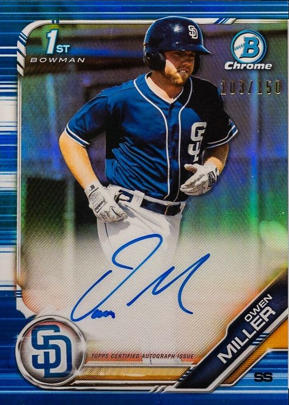 2019 Bowman Chrome Blue Refractor Owen Miller San Diego Padres Auto /150