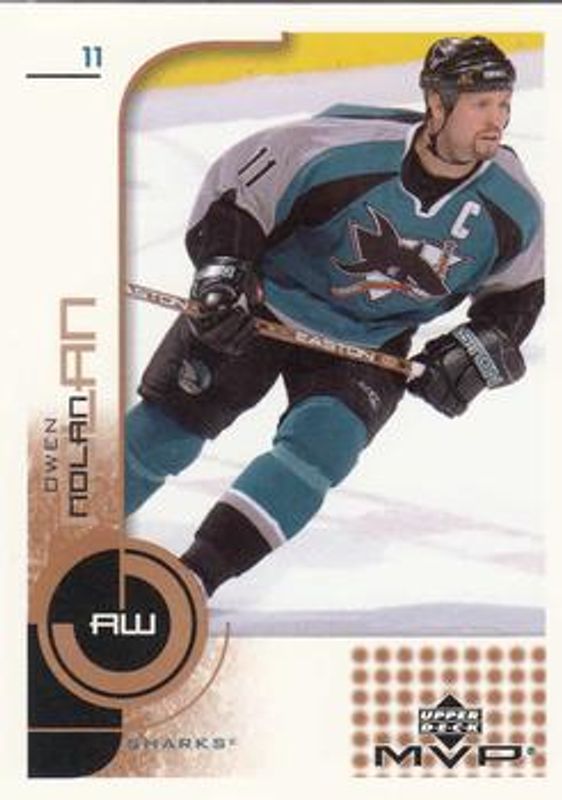 The Owen Nolan 2002 Upper Deck MVP #152 Base card is 1 of 4 Owen Nolan's card variations in the 2002 Upper Deck MVP set being tracked by Sports Card Investor, including Classics, Gold /100, and Golden Classics /50.