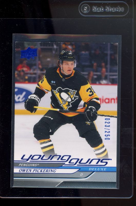 The Owen Pickering 2024 Upper Deck Extended Series #703 Deluxe /250 Rookie card is 1 of 42 Owen Pickering's card variations in the 2024 Upper Deck Extended Series set being tracked by Sports Card Investor, including #732 Base, #703 Base, #703 Young Guns Base, #703 Clear Cut, and #732 Clear Cut.
