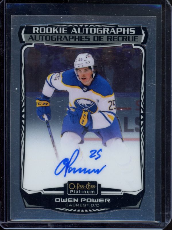 The Owen Power 2022 O-Pee-Chee Platinum #R-OP Rookie Autographs card is 1 of 45 Owen Power's card variations in the 2022 O-Pee-Chee Platinum set being tracked by Sports Card Investor, including Base, Matte Pink, Neon Yellow Surge, Rainbow, and Sunset.