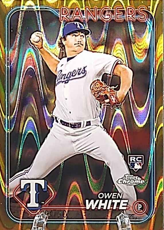 The Owen White 2024 Topps Chrome #211 Gold RayWave Refractor /50 Rookie card in Raw condition has not changed in price in the last 30 days and was last sold for $14.99 .