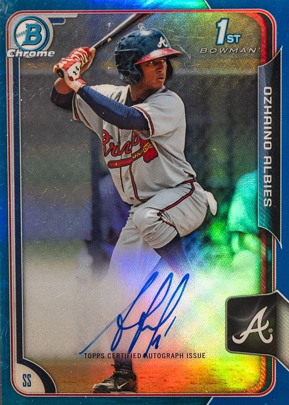 OZHAINO ALBIES 2015 Bowman 1st Chrome Blue Refractor RC On Card Auto /150 Braves