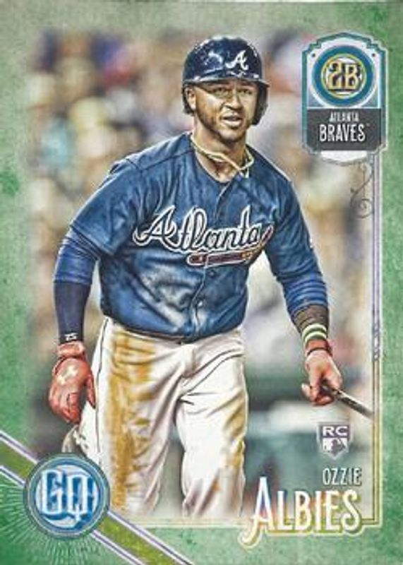 The Ozzie Albies 2018 Topps Gypsy Queen #163 Green Rookie card is 1 of 24 Ozzie Albies' card variations in the 2018 Topps Gypsy Queen set being tracked by Sports Card Investor, including #163 Base, #163b Base, #163 Bazooka Back, #163 GQ Logo Swap, and #163 Missing Black Plate.