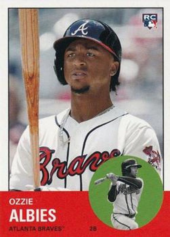 The Ozzie Albies 2018 Topps Throwback Thursday #225 Base Rookie card is 1 of 7 Ozzie Albies' card variations in the 2018 Topps Throwback Thursday set being tracked by Sports Card Investor, including #109 Base, #126 Base, #134 Base, #136 Base, and #203 Base.