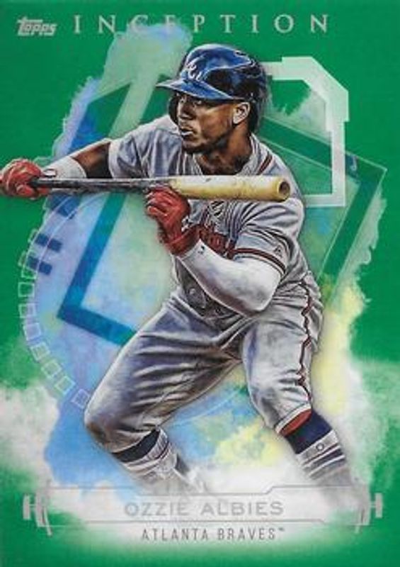 The Ozzie Albies 2019 Topps Inception #60 Green card is 1 of 22 Ozzie Albies' card variations in the 2019 Topps Inception set being tracked by Sports Card Investor, including Base, Purple /150, Magenta /99, Red /75, and Orange /50.