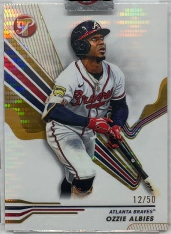The Ozzie Albies 2024 Topps Pristine #81 Pristine Gold Refractor /50 card is 1 of 55 Ozzie Albies' card variations in the 2024 Topps Pristine set being tracked by Sports Card Investor, including #81 Base, #279 Base, #81 Pristine Refractor, #279 Pristine Refractor, and #81 Refractor.