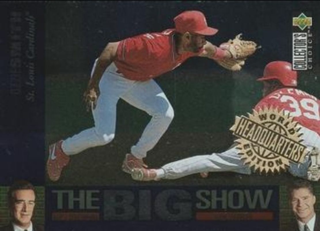 The Ozzie Smith 1997 Upper Deck Collector's Choice #38 The Big Show World Headquarters Edition card is 1 of 5 Ozzie Smith's card variations in the 1997 Upper Deck Collector's Choice set being tracked by Sports Card Investor, including Base, Box Toppers, Stick'Ums (Hobby), and The Big Show.