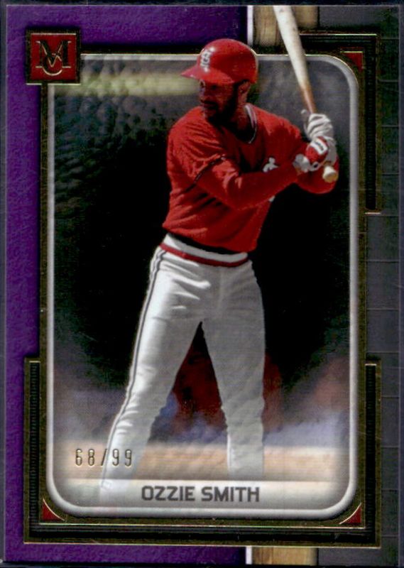 The Ozzie Smith 2023 Topps Museum Collection #97 Amethyst /99 card is 1 of 29 Ozzie Smith's card variations in the 2023 Topps Museum Collection set being tracked by Sports Card Investor, including Base, Copper, Gold /299, Sapphire /150, and Ruby /50.