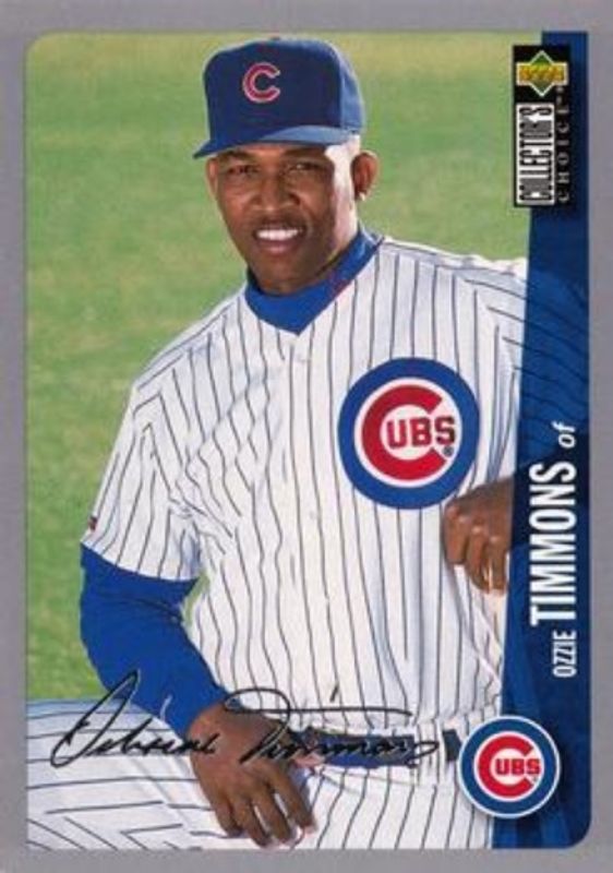 The Ozzie Timmons 1996 Upper Deck Collector's Choice #88 Silver Signatures card is 1 of 3 Ozzie Timmons' card variations in the 1996 Upper Deck Collector's Choice set being tracked by Sports Card Investor, including Base, and Gold Signatures.