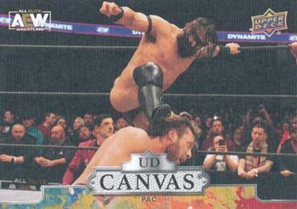 The P 2023 Upper Deck AEW #C42 UD Canvas card is 1 of 43 P's card variations in the 2023 Upper Deck AEW set being tracked by Sports Card Investor, including Base, Clear Cut, Diamond Plate, Gold, and Pyro.