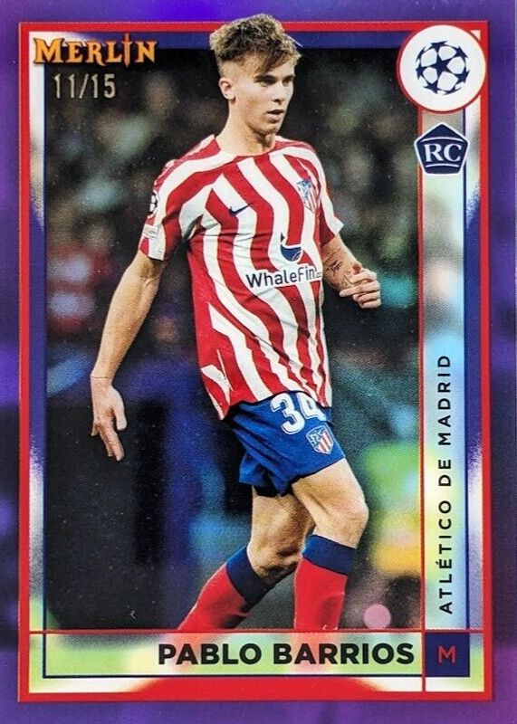 This card is 1 of 24 Pablo Barrios' card variations in the 2022 Topps Merlin Chrome UEFA Club Competitions set being tracked by Sports Card Investor, including Base, Aqua Prism Refractor, Refractor, Vintage Merlin Refractor, and Neon Green Shimmer Refractor /350.