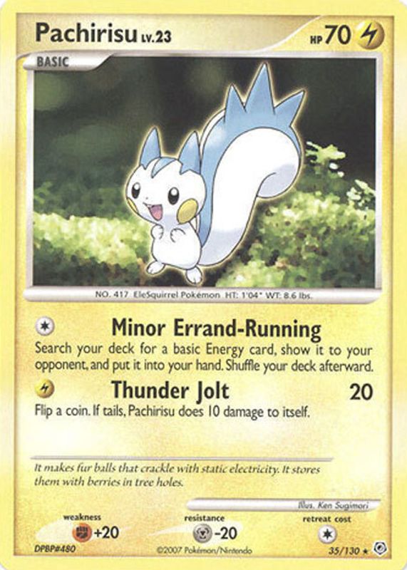 The Pachirisu 2007 Diamond & Pearl #035/130 Base card in Raw TCG (Near Mint) condition has not changed in price in the last 30 days and was last sold for $3.59 .