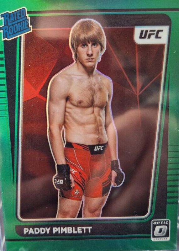 The Paddy Pimblett 2022 Optic UFC #103 Green /5 Rookie card in Raw condition has not changed in price in the last 30 days and was last sold for $455.00 .
