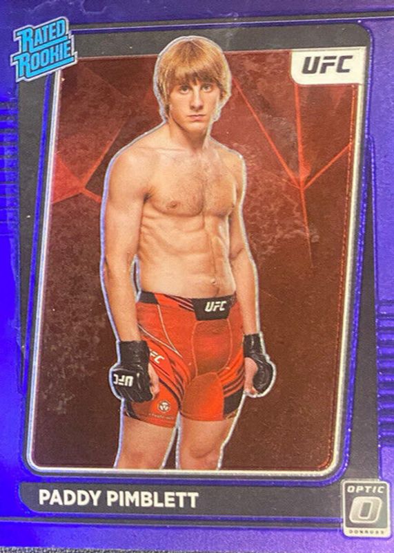 The Paddy Pimblett 2022 Optic UFC #103 Purple Rookie card in Raw condition has not changed in price in the last 30 days and was last sold for $9.99 .