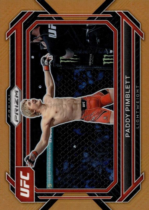 The Paddy Pimblett 2023 Prizm UFC #87 Orange /99 card in Raw condition has not changed in price in the last 30 days and was last sold for $10.99 .