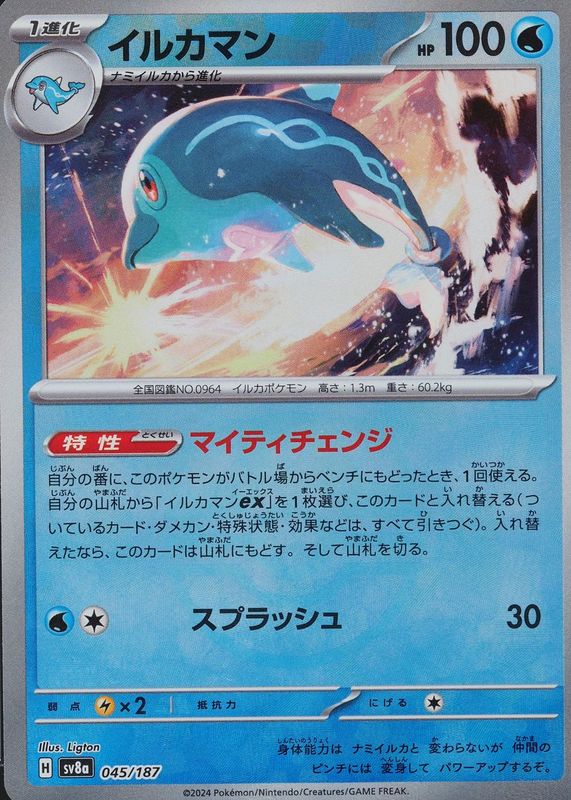 This card is 1 of 3 Palafin's card variations in the 2024 Japanese Scarlet & Violet: Terastal Fest ex set being tracked by Sports Card Investor, including Base, and Reverse Holo.