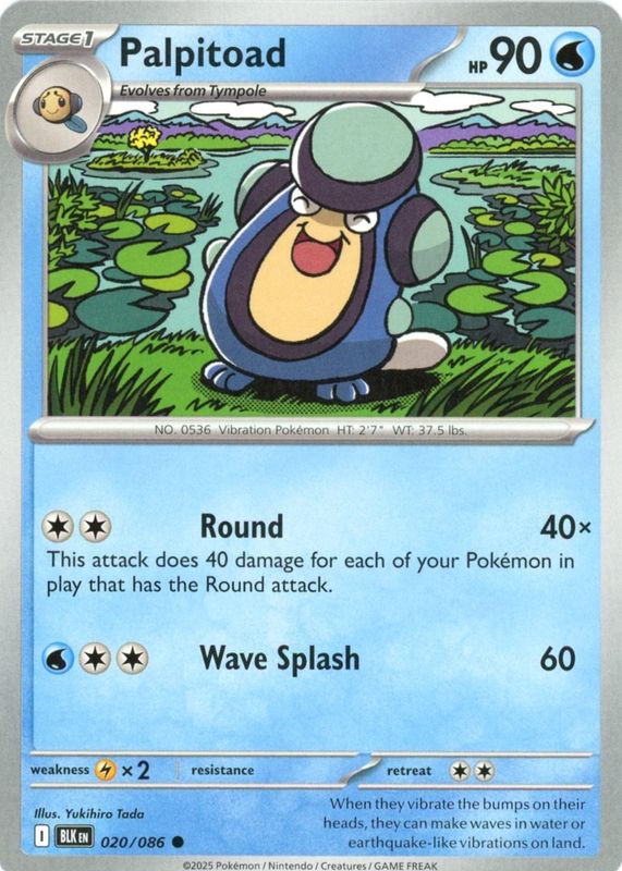 Palpitoad 2025 Scarlet & Violet: Black Bolt #020/086 Base RAW TCG (NEAR MINT) Price Guide