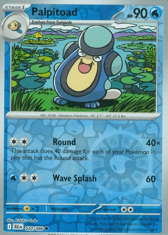 Palpitoad 2025 Scarlet & Violet: Black Bolt #020/086 Reverse Holo RAW TCG (LIGHTLY PLAYED) Price Guide