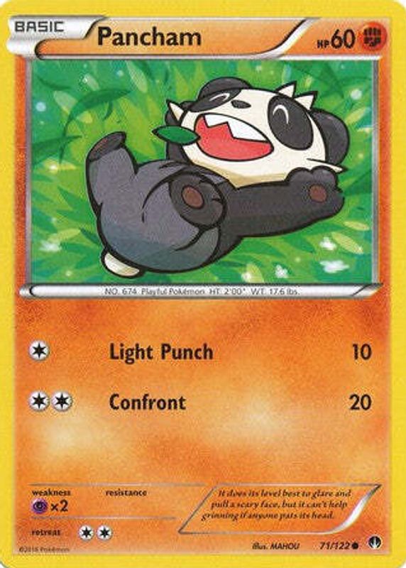 The Pancham 2016 XY: BREAKpoint #071/122 Base card in Raw TCG (Near Mint) condition has moved down -$0.50 (-20.1%) in the last 30 days and was last sold for $1.99 .