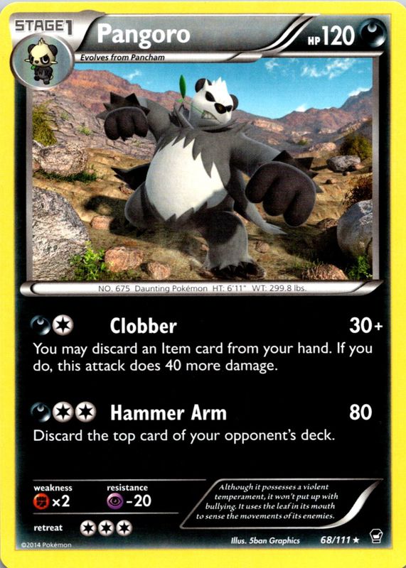 The Pangoro 2014 XY: Furious Fists #068/111 Base card in Raw TCG (Lightly Played) condition has not changed in price in the last 30 days and was last sold for $1.75 .