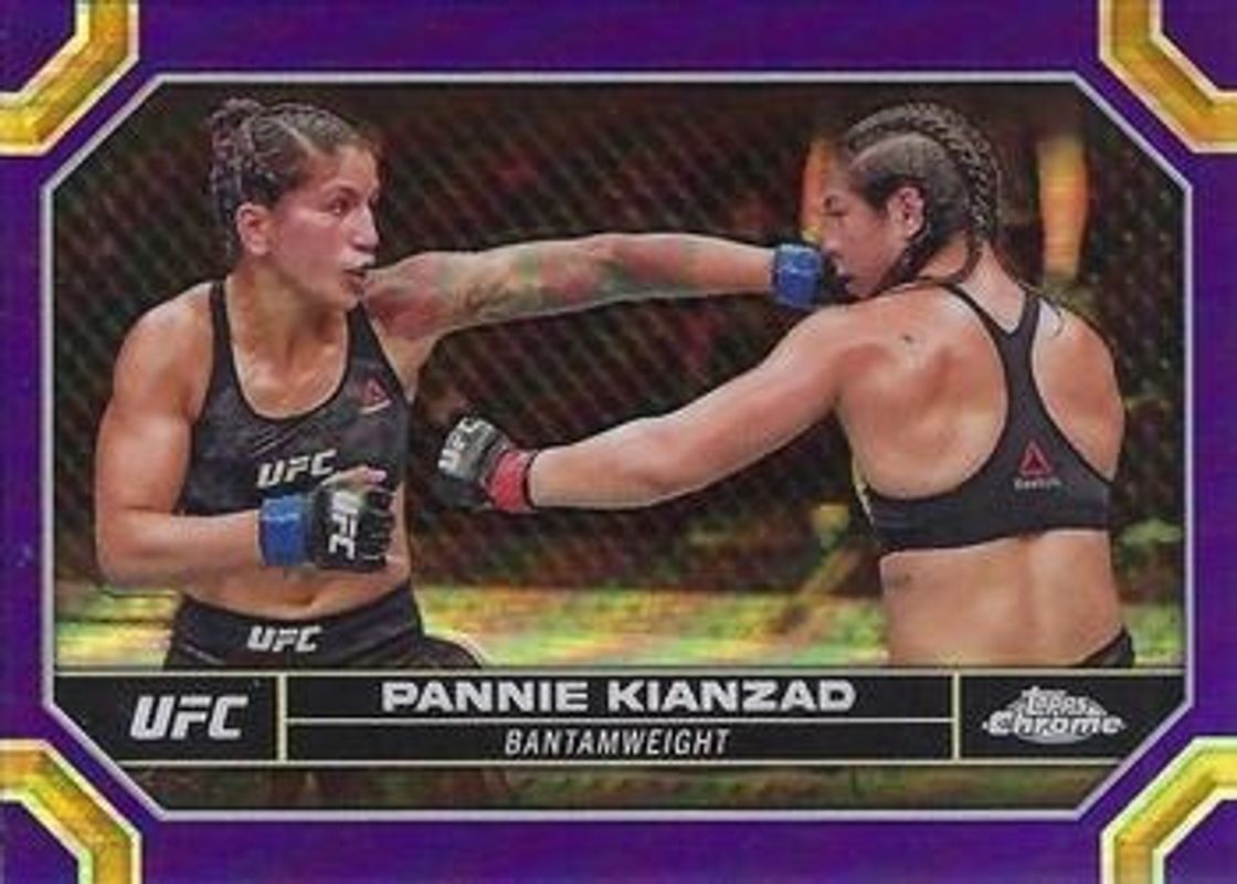 The Pannie Kianzad 2024 Topps Chrome UFC #152 Purple Refractor card is 1 of 18 Pannie Kianzad's card variations in the 2024 Topps Chrome UFC set being tracked by Sports Card Investor, including Base, Magenta Refractor, Negative Refractor, Prism Refractor, and Refractor.