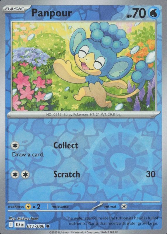 Pokemon TCG Panpour NM Reverse Holo 017/086 Black Bolt Card Scarlet Violet Card