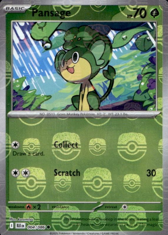 Pansage (Master Ball Pattern) - 004/086 - Pokemon Black Bolt Common NM