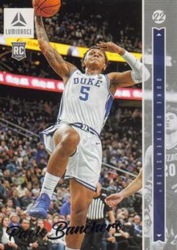 The Paolo Banchero 2022 Chronicles Draft Picks #2 Luminance - Black Rookie card is 1 of 215 Paolo Banchero's card variations in the 2022 Chronicles Draft Picks set being tracked by Sports Card Investor, including Base, Black, Bronze, Pink, and Pulsar.