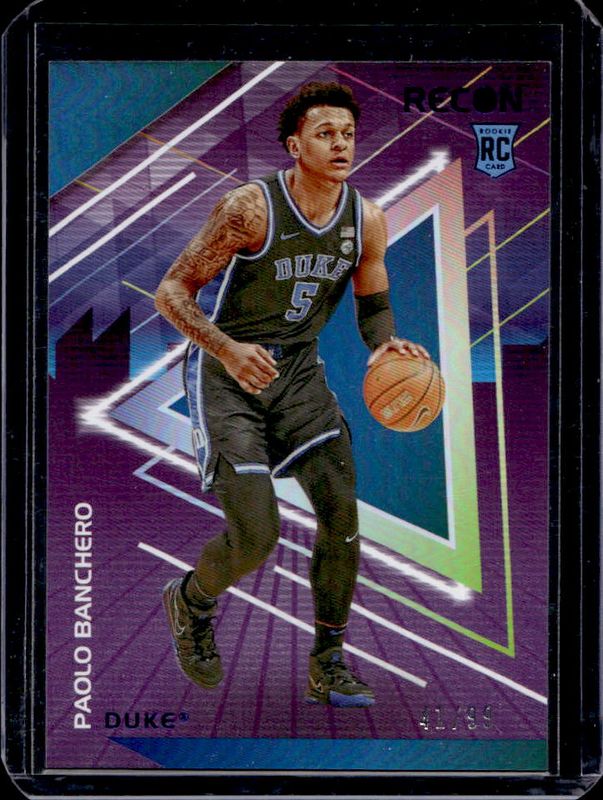 The Paolo Banchero 2022 Chronicles Draft Picks #2 Recon - Blue /99 Rookie card is 1 of 215 Paolo Banchero's card variations in the 2022 Chronicles Draft Picks set being tracked by Sports Card Investor, including Base, Black, Bronze, Pink, and Pulsar.