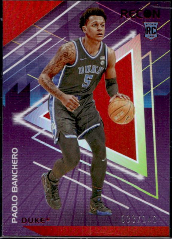 The Paolo Banchero 2022 Chronicles Draft Picks #2 Recon - Red /149 Rookie card is 1 of 215 Paolo Banchero's card variations in the 2022 Chronicles Draft Picks set being tracked by Sports Card Investor, including Base, Black, Bronze, Pink, and Pulsar.