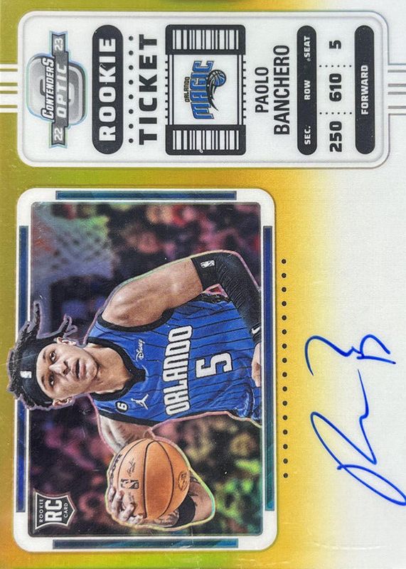 2022-23 Contenders Optic Paolo Banchero RC Rookie Ticket Variation Gold Auto /10