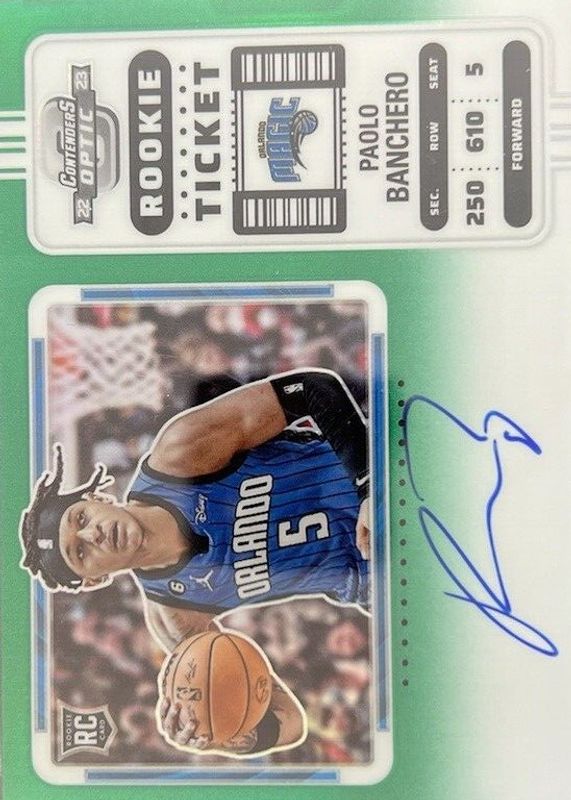 2022-23 Contenders Optic Green Variation Paolo Banchero RC Rookie 69/75 AUTO